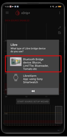5. Selecione como o dispositivo de conexão "Bluetooth: Blucon, LimiTTer, Bluereader, Tomato etc"